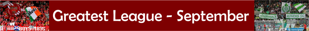 September 22nd to 27th - Shamrock Rovers have all but confirmed a fifth title in six seasons after two victories this week. A two-one win in Waterford on Monday night was followed by a win by the same score against old rivals Bohemians on Friday night. A second half winner from Danny Mandroiu saw Stephen Bradley's side pick up the win which leaves them pretty much uncatchable at the top of the table. A defeat in Drogheda for Derry would have confirmed the title but Danny Mullen's equaliser earned a point which leaves Tiernan Lynch's side twelve points behind the leaders with four games to play and an inferior goal difference of seventeen goals to make up too... The battle for the European places will probably give the most entertainment over the last few weeks of the season. Derry and Bohs remain in second and third place. Drogheda are fourth with St Patricks Athletic and Shelbourne currently sharing fifth place. Shels have a match in hand, in Tallaght, which could leave them just a point off the top three. Pats did their chances no favours at all, losing one-nil in Sligo on Saturday night. This could go down to the final day of the season when Drogheda face Bohemians and Shelbourne host St Patricks Athletic... At the bottom, Cork City's defeat in Galway leaves them eleven points adrift of their opponents and Waterford with just four games to go. It would take another mathematical miracle for Ger Nash's team to get out of this one. Again, the final day's fixtures list has placed Waterford at home to Galway - that could be a survival playoff with the winners preserving top division status with the losers facing the playoffs. Waterford will have a new manager in charge for that one with John Coleman collecting his P45 after defeat against Shelbourne. Things are slightly clearer in the First Division. A three-two win at home to UCD leaves Dundalk six points clear with three games to go. Cobh Ramblers remain in second place after a four-one win at home to Finn Harps. Bray and UCD are odds on to face each other in one of the playoff semi-finals. Wexford's win in Athlone on Friday night leaves them just a point behind Treaty United in the battle for the last playoff place. They play on the final night in Wexford as the fixtures computer has thrown up another beauty. A score of 92 points from the Monday and weekend games from Gary Fitzpatrick (including no less than 7 ten-pointers) saw him canter to a twenty eight point victory in September. Alan O'Brien was best of the rest with Andy Dunne and Shane McCormack sharing third place for the month: |